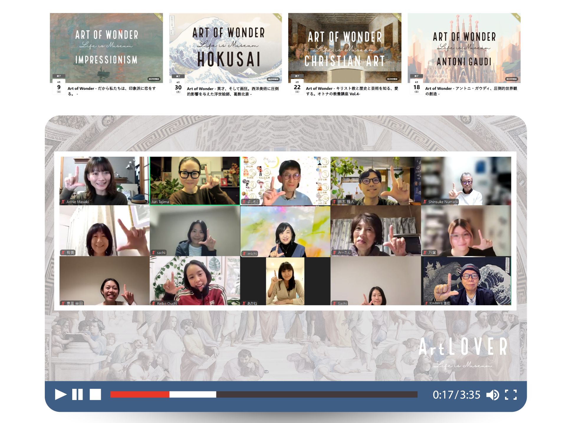 ArtLOVER は「知ることの喜びを知ってほしい。本当の心の豊かさを知ってほしい」という想いから誕生したコミュニティ。
