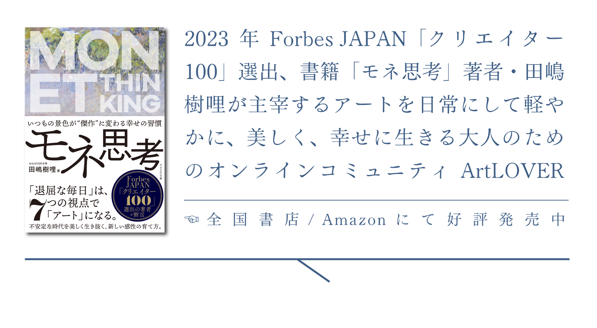 「美しさに気づくことこそ、真の豊かさである」という哲学のもと、感性を磨き、人生をより豊かにする「アート教養」を提唱。その独自の視点は、2023年に『Forbes JAPAN』が選出する「クリエイター100」として高く評価される。